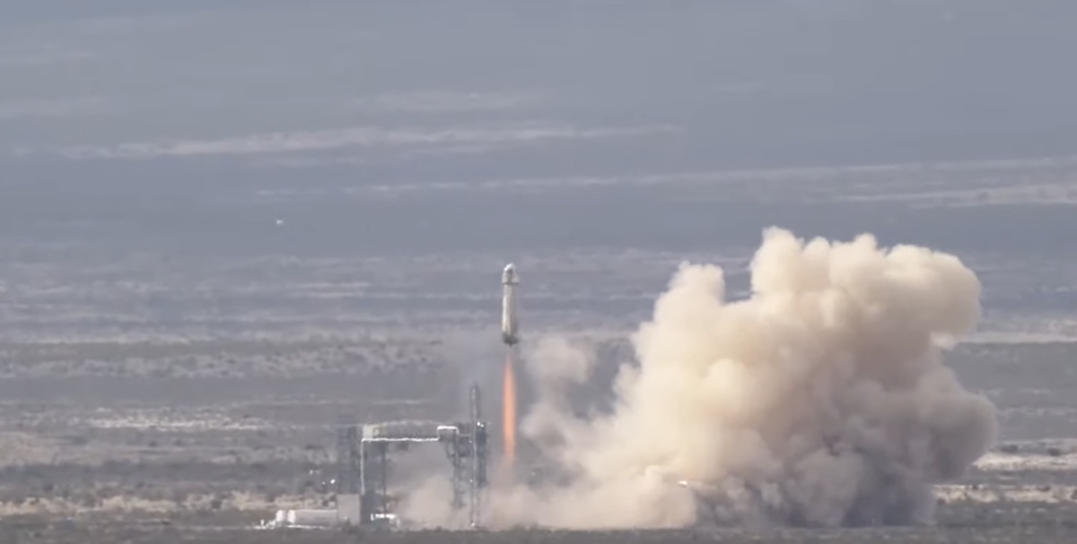 New Shepard lifted off at 11:42 a.m. Eastern from Blue Origin’s Launch Site One in West Texas. The capsule landed under parachutes 10 minutes and 13 seconds later, after reaching a peak altitude of 107 kilometers, while the propulsion module landed vertically using its engine nearly three minutes earlier.